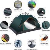 چادر اتوماتیک چهار نفره از سری چادر های مسافرتی بزرگ و مناسب برای استفاده گروهی و خانوادگی است که به رنگ های مختلفی ساخته شده و کیفیت آن بسیار بالاست ، چادر های مسافرتی با ایجاد حریم خصوصی می تواند سفری لذت بخش و راحتی را برای هر مسافری ایجاد کند.از آن جا که اغلب مسافرین با خودرو های شخصی خود به سفر می روند حمل این چادر های مسافرتی آسان تر شده است ، وزن چادر اتوماتیک 4 نفره تنها 3/5 کیلوگرم می باشد چرا که از اجناس سبک و درجه یک ساخته شده است .جنس پارچه ازنوع آکسفورد (پلی اورتان) کاملا” ضد آب تا 3000 میلیمتر ستون جیوه(پارچه از سه لایه تشکیل شده ، دو لایه ضدآب ویک لایه وینیل ضد آفتاب) می باشد . پایه های چادر اتوماتیک کوهنوردی از جنس فایبرگلاس ساخته شده است ،فایبرگلاس از نمونه اجناسی است که نوعی کامپوزیت پلیمری می باشد از وزن بسیار سبکی برخودار بوده اما در عین حال استحکام بسیار بالایی را دارد ، به همین دلیل استفاده از آن موجب شده تا وزن چادر های مسافرتی تا حد زیادی کاهش یابد .