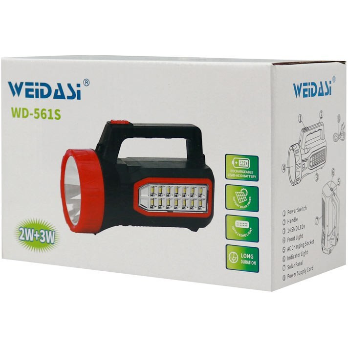 متاسفانه این کالا در حال حاضر موجود نیست. میتوانید از طریق لیست بالای صفحه، از محصولات مشابه این کالا دیدن نمایید.چراغ قوه ال ای دی و نورافکن دستی مدل قابل شارژ با دابتور و نور خورشیدی R نورافکن دستی ویداسی مدل 562S