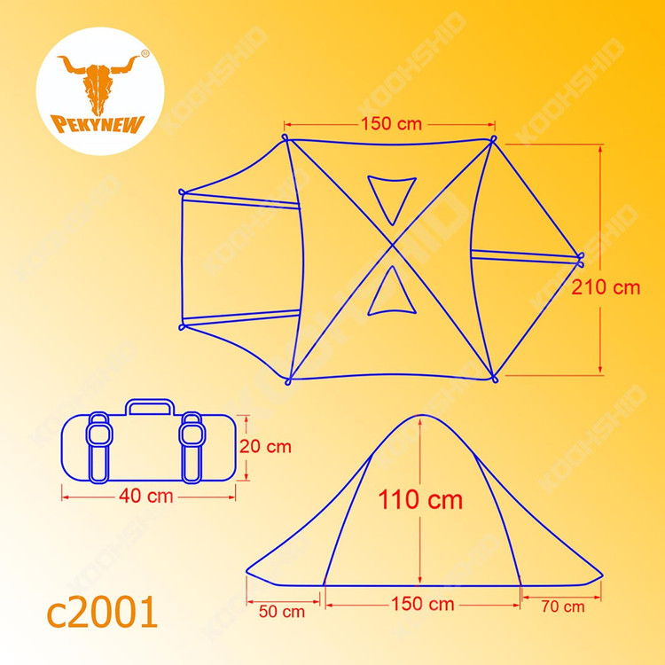 چادر c2001 بخاطر داشتن تیرک های آلومینیومی وزن چادر بسیار سبک کرده تا حمل آن آسان صورت گیرد .