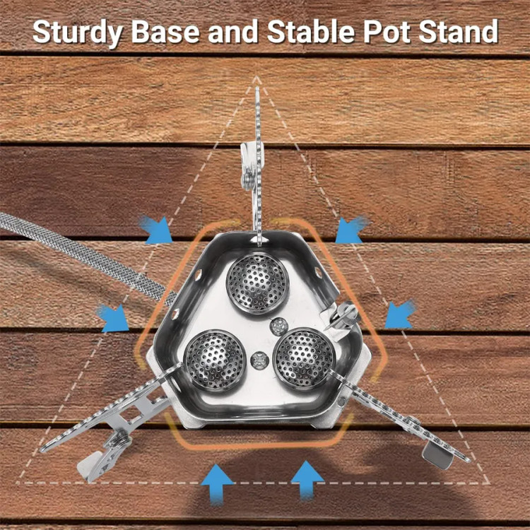 سر شعله از فولاد ضد زنگ با کیفیت بالا و مس ارتقا یافته ساخته شده است، در برابر دما و وزن بالا، ضربدیدگی، مقاومت در برابر اکسیداسیون قوی است. سر شلعه تاشو یک اجاق ضد لغزش با استحکام بالا است و تقریباً ۳۰ کیلوگرم ظرفیت دارد