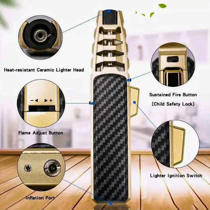 فندک کمپینگ توربو جت لایتر یک محصول بسیار کاربردی و بسیار با کیفیت برای استفاده در مسافرت ، کوه و طبیعت و منزل میتواند برای روشن کردن و آتش زدن زغال و چوب و روشن کردن اجاق گاز و مصارف بسیار زیاد دیگر مورد استفاده قرار گیرد . فندکها بسته به سوخت مصرفی و موارد استفادهشان دارای انواع مختلفی هستند. فندکهای گازی که از پرکاربردترین انواع فندک هستند، با سوخت گاز مایع روشن میشوند و گاز درون آنها پس از اتمام میتواند شارژ شود. این فندک میتواند در خانه، سفر ، پیکنیک و حتی برای روشن کردن سیگار استفاده شود. فندک کمپینگ توربو جت LIGHTER یک فندک گازی با سوخت گاز مایع است. سوخت فندک پس از اتمام، قابل شارژ کردن است و تنها نیاز است گاز مایع مصرفی را تهیه و هر بار آن را شارژ کنید همچنین دارای سری سرامیکی ، جنس بدنه فلزی ، قفل محافظ قفل کننده کلید روشن کننده فندک ، دارای دکمه تنظیم کننده خروجی گاز و کم و زیاد کردن شعله گاز ، دارای کلید محکم و بزرگ و راحت برای روش کردن فندک و دارای جعبه بسیار محکم و زیبای کادویی . این فندک دارای ابعاد 27×43×180 میلیمتر و وزن 200 گرم است.